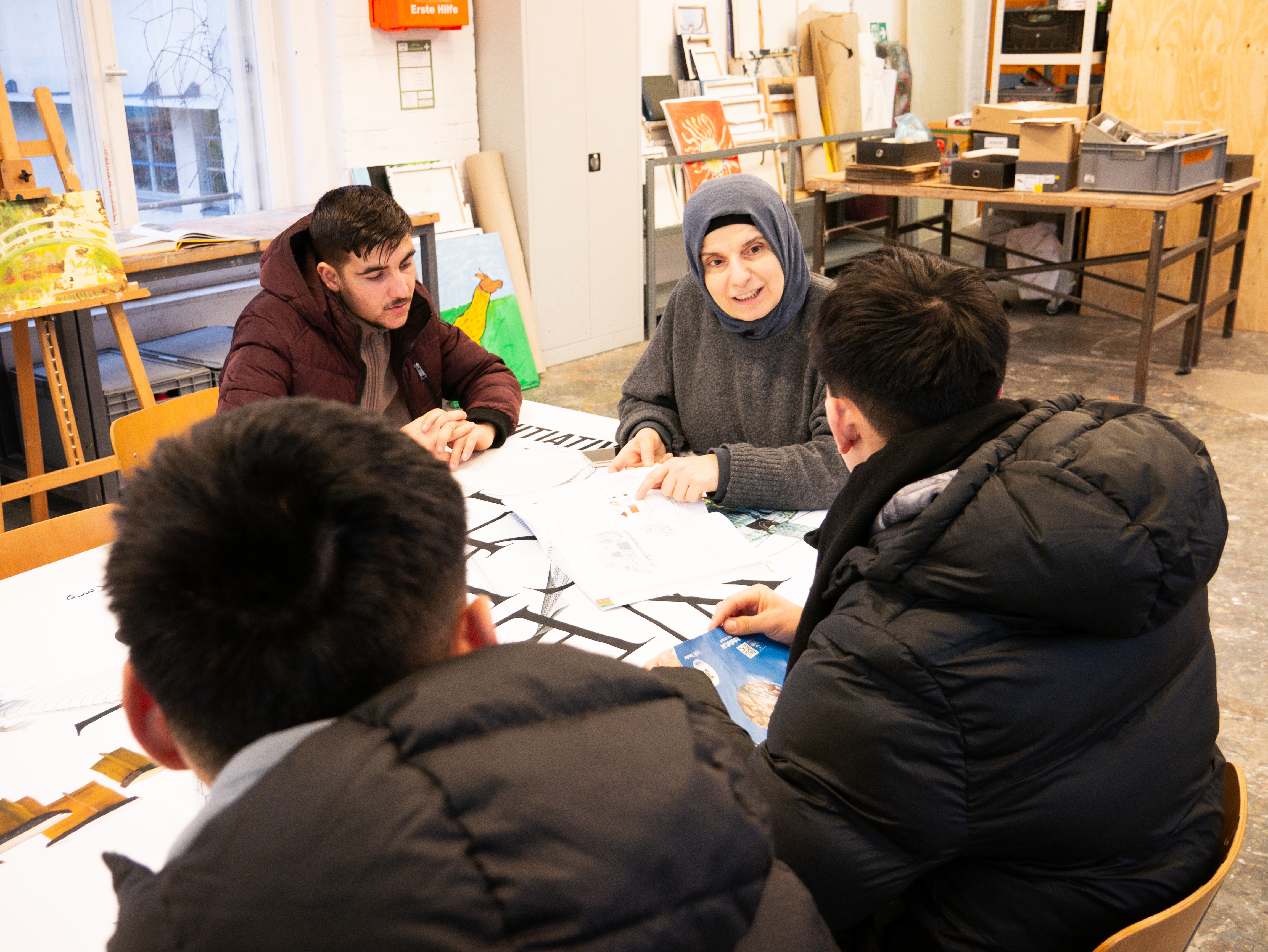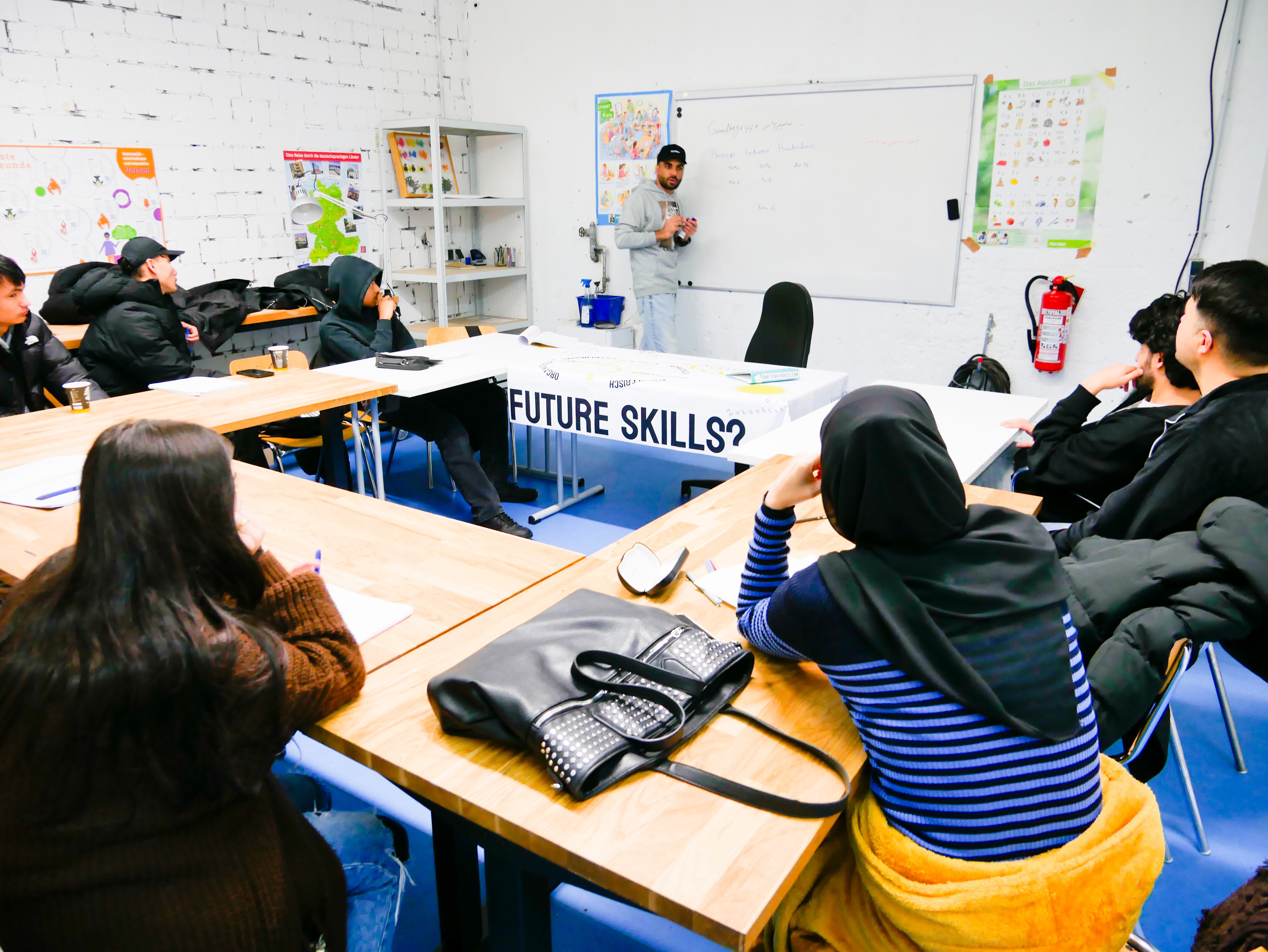 An unseren improvisierten LERNTISCHEN wechseln sich Lehren und Lernen ab: COMMUNITY TEACHER – das sind erfahrene Akademiker*innen, Verwaltungsleute und Lehrer*innen aus Krisenregionen - und PEER TEACHER, Jugendliche mit ähnlichen Lebensrealitäten wie die Trainees und Schüler*innen, gestalten gemeinsam die Lehrangebote: Basislernen in Muttersprache, Formate zu Alltagsthemen, Fragen rund ums Ankommen und Zukunftsgestaltung bilden den Rahmen.